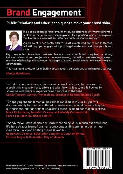 This is a must-have book for all SMEs who want practical advice on public relations and other techniques to create low cost and effective PR campaigns. The spark to write this book came after the public relations company I established in 1992, WMC Public Relations, turned 20. It jolted me into thinking about everything that I had learnt since starting my PR career and all my past experiences that are now woven into my professional makeup. I thought it was time to share what I know with small to medium sized enterprises so that they may be helped in establishing and growing their brand, that it engages their stakeholders and continues to shine. The book includes chapters from high profile business people who share their knowledge on subjects including sales, innovation, customer engagement, member relationship management, strategic alliances, social media and SEO.
