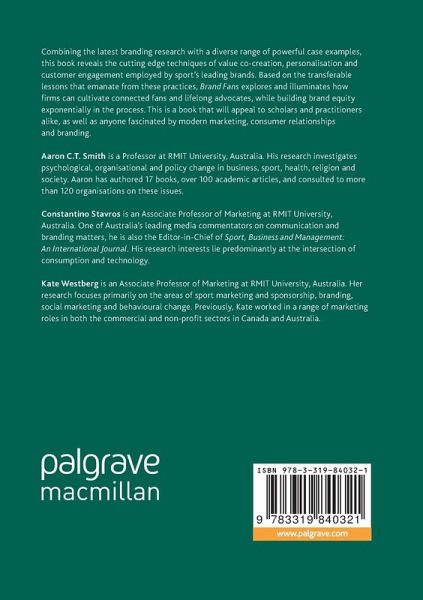 Combining the latest branding research with a diverse range of powerful case examples, this book reveals the cutting edge techniques of value co-creation, personalisation and customer engagement employed by sport's leading brands. Based on the transferable lessons that emanate from these practices, Brand Fans explores and illuminates how firms can cultivate connected fans and lifelong advocates, while building brand equity exponentially in the process. This is a book that will appeal to scholars and practitioners alike, as well as anyone fascinated by modern marketing, consumer relationships and branding.