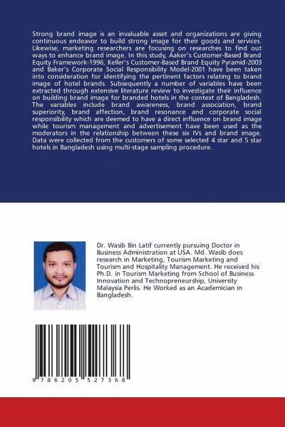 Strong brand image is an invaluable asset and organizations are giving continuous endeavor to build strong image for their goods and services. Likewise, marketing researchers are focusing on researches to find out ways to enhance brand image. In this study, Aaker's Customer-Based Brand Equity Framework-1996, Keller's Customer-Based Brand Equity Pyramid-2003 and Baker's Corporate Social Responsibility Model-2001 have been taken into consideration for identifying the pertinent factors relating to brand image of hotel brands. Subsequently a number of variables have been extracted through extensive literature review to investigate their influence on building brand image for branded hotels in the context of Bangladesh. The variables include brand awareness, brand association, brand superiority, brand affection, brand resonance and corporate social responsibility which are deemed to have a direct influence on brand image while tourism management and advertisement have been used as the moderators in the relationship between these six IVs and brand image. Data were collected from the customers of some selected 4 star and 5 star hotels in Bangladesh using multi-stage sampling procedure.