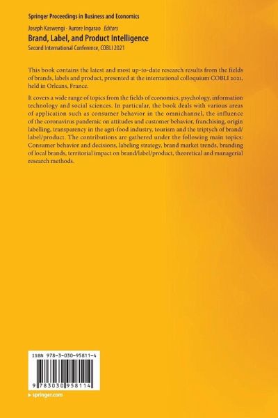 This book contains the latest and most up-to-date research results from the fields of brands, labels and product, presented at the international colloquium COBLI 2021, held in Orleans, France. It covers a wide range of topics from the fields of economics, psychology, information technology and social sciences. In particular, the book deals with various areas of application such as consumer behavior in the omnichannel, the influence of the coronavirus pandemic on attitudes and customer behavior, franchising, origin labelling, transparency in the agri-food industry, tourism and the triptych of brand/label/product. The contributions are gathered under the following main topics: Consumer behavior and decisions, labeling strategy, brand market trends, branding of local brands, territorial impact on brand/label/product, theoretical and managerial research methods.