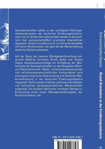 Auf der Basis der neueren Managementforschung entwickeln Matthias Schramm, Achim Spiller und Torsten Staack Gestaltungsvorschläge zur Schließung der Markenlücke bei Genossenschaften an den Beispielen Milch- und Fleischwirtschaft. Neben institutionenökonomischen und verhaltenswissenschaftlichen Fachansätzen wird eine eigene empirische Untersuchung zum Stand der Markenorientierung in der deutschen Ernährungsindustrie vorgestellt. Damit werden erstmals umfassend die Stärken und Schwächen genossenschaftlicher Markenartikler aufgezeigt. Die Analyse stellt einen wichtigen Beitrag zur Entwicklung eines neuen Managementkonzeptes, der Brand Orientation, dar.