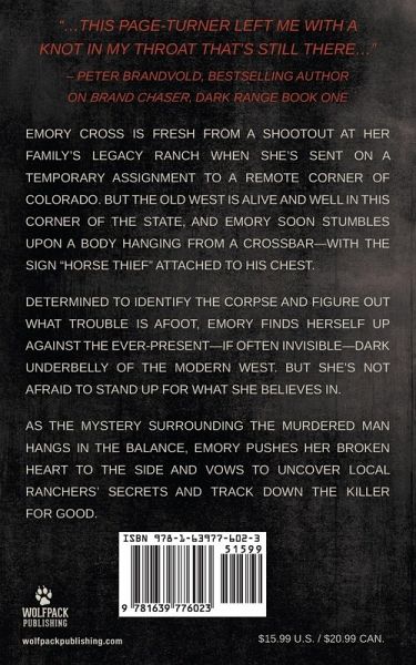 "Emory Cross is fresh from a shootout at her family's legacy ranch when she's sent on a temporary assignment to a remote corner of Colorado. But the old west is alive and well in this corner of the state, and Emory soon stumbles upon a body hanging from a crossbar--with the sign "horse thief" attached to his chest. Determined to identify the corpse and figure out what trouble is afoot, Emory finds herself up against the ever-present--if often invisible-dark underbelly of the modern west. But she's not afraid to stand up for what she believes in. As the mystery surrounding the murdered man hangs in the balance, Emory pushes her broken heart to the side and vows to uncover local ranchers' secrets and track down the killer for good."