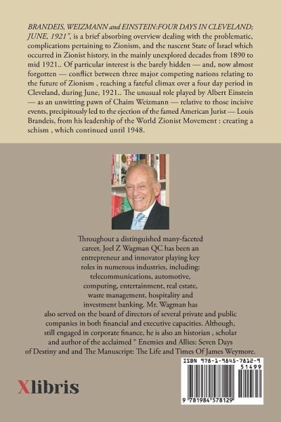 BRANDEIS, WEIZMANN and EINSTEIN:FOUR DAYS IN CLEVELAND; JUNE, 1921", is a brief absorbing overview dealing with the problematic, complications as to Zionism, and the nascent State of Israel which occurred in Zionist history, in the mainly unexplored decades from 1890 to mid 1921.. Of particular interest is the barely hidden -- and, now almost forgotten -- conflict between three major competing nations as to the future of Zionism , reaching a fateful climax over a four day period in Cleveland, during June, 1921.. The unusual role played by Albert Einstein -- as an unwitting pawn of Chaim Weizmann -- relative to those incisive events, precipitously led to the ejection of the famed American Jurist -- Louis Brandeis, from his leadership of the World Zionist Movement : creating a schism , which continued until 1948.