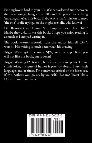 Finding love is hard in your 30s: it's that awkward time between the pre-marriage, bang 'em all 20's and the post-divorce, bang 'em all again 40's. This book is about one man's mission to meet "the one" or die trying... or she might even die, who knows? Did Bukowski and Hunter S. Thompson have a love child? Maybe they did... It was this book. I hope you enjoy reading it as much as I enjoyed writing it. The book features artwork from the author himself. Don't worry... His writing is much better than his drawing! Trigger Warning #1: If you're an SJW, fascist, or Republican, you will not like this book, put it down! Trigger Warning #2: You will be offended at some point: I make ethnic jokes, my sense of humor is patently absurd, I use harsh language, and at times, I'm somewhat critical of the fairer sex. If this bothers you, go cry by yourself... Do not Tweet like a Donald Trump wannabe.