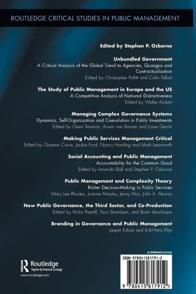 Politicians and public managers utilize branding to communicate with the public as well as to position themselves within the ever-present media now so central to political and administrative life. They must further contend with stakeholders holding contradictory opinions about the nature of a problem, the desirable solutions , and the values at stake. Branding is used as a strategy to manage perceptions, motivate stakeholders, communicate clear messages in the media, and position policies and projects. Brands have a unique ability to simplify such messages and motivate different actors to invest their energy in governance processes. Public administration scholars so far have however paid little attention to branding. This book provides a systematic analysis of branding as phenomenon in governance. It deals with the nature of public branding, its relation to existing theories in public administration, the way branding is used as a managerial strategy in governance processes, and the risks and limitations of branding. Branding in Public Governance and Management highlights the growing importance of public banding as a public management strategy to influence political events, decision-making processes and outcomes in governance processes.