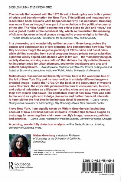 Winner of the 2009 Robert Park Book Award for best Community and Urban Sociology book! Branding New York traces the rise of New York City as a brand and the resultant transformation of urban politics and public life. Greenberg addresses the role of "image" in urban history, showing who produces brands and how, and demonstrates the enormous consequences of branding. She shows that the branding of New York was not simply a marketing tool; rather it was a political strategy meant to legitimatize market-based solutions over social objectives.