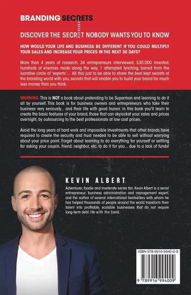 How would your life and business be different if you could multiply your sales and increase your prices in the next 30 days? Discover the secret branding experts don't want you to know. WARNING: This is NOT a book about pretending to be Superman and learning to do it all by yourself. This book is for business owners and entrepreneurs who take their business very seriously...and their life with good humor. In this book you'll learn to create the basic features of your brand, those that can skyrocket your sales and prices overnight, by outsourcing to the best professionals at low cost prices. Avoid the long years of hard work and impossible investments that other brands have required to create the security and trust needed to be able to sell without worrying about your price point. Forget about learning to do everything for yourself or settling for asking your cousin, friend, neighbor, etc. to do it for you... due to a lack of funds! *More than 4 years of research, 34 entrepreneurs interviewed, $30,000 invested, hundreds of enemies made along the way, 1 attempted lynching, barred from the lucrative circle of 'experts'... All this just to be able to share the best kept secrets of the branding world with you, secrets that will enable you to build your brand for much less money than you think.