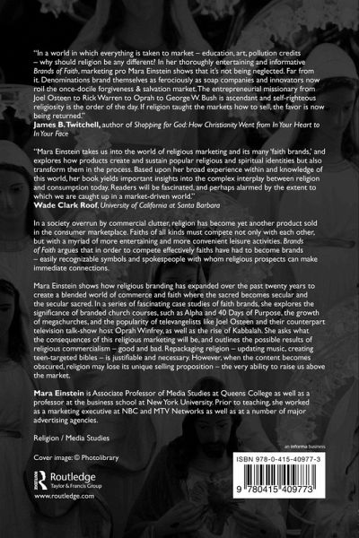 In a society overrun by commercial clutter, religion has become yet another product sold in the consumer marketplace, and faiths of all kinds must compete with a myriad of more entertaining and more convenient leisure activities. Brands of Faith argues that in order to compete effectively faiths have had to become brands - easily recognizable symbols and spokespeople with whom religious prospects can make immediate connections Mara Einstein shows how religious branding has expanded over the past twenty years to create a blended world of commerce and faith where the sacred becomes secular and the secular sacred. In a series of fascinating case studies of faith brands, she explores the significance of branded church courses, such as Alpha and The Purpose Driven Life, mega-churches, and the popularity of the televangelist Joel Olsteen and television presenter Oprah Winfrey, as well as the rise of Kaballah. She asks what the consequences of this religious marketing will be, and outlines the possible results of religious commercialism - good and bad. Repackaging religion - updating music, creating teen-targeted bibles - is justifiable and necessary. However, when the content becomes obscured, religion may lose its unique selling proposition - the very ability to raise us above the market.