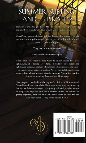 Summer, Surfing, and . . . Pirates? Branson Garcia is a good kid. He's proud of his straight A's and popular best friends who love to surf almost as much as he does. Gina Penny knows all about bullies. Born with a tendency to talk too much and a quick temper, she carries the sallow title of town pest everywhere she goes. They live on the same street. They couldn't be further apart. When Branson's friends dare Gina to sneak inside the local lighthouse, she disappears. Branson follows and meets the lighthouse keeper, a reclusive fisherman who possesses the ability to charter souls between worlds. Worse, the lighthouse keeper keeps talking about pirates, plundering, and North Stars and is intent on sending Branson and Gina away. Now, trapped inside the seafaring world of Sceros, Branson and Gina ally with the crew of the Heretic-a pirate ship captained by the elusive Edward Antaeus. Navigating colorful jungles, sirens of magic and mystery, and sea monsters under the control of greedy captains, Branson and Gina must learn to trust the sea and each other if they are to return home.