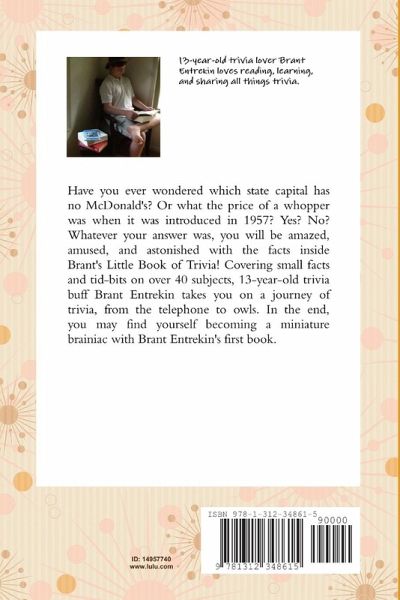 13-year-old trivia whiz Brant Entrekin scoured the world of trivia to bring facts and tid-bits on over 40 different subjects, from the telephone to owls. Any trivia buff will enjoy this book, and anyone who reads will walk away feeling like a brainiac.