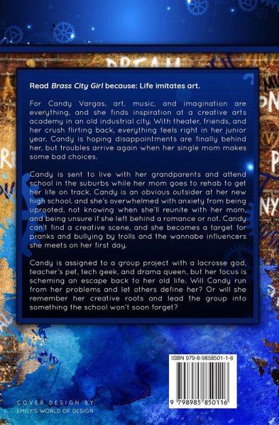 "This novel has notes of School of Rock and The Breakfast Club with high school and family drama." In Candy's junior year, she has a huge role in the school's production, and she's hoping Benny's attention is the start of a new romance. But family troubles send her to live with her grandparents and attend school in the suburbs while her single mom goes to rehab to get her life on track. Not knowing when she'll reunite with her mom and leaving friends and a possible romance behind overwhelms Candy with anxiety. Maybe her old friends will forget about her? Maybe Benny flirts with everyone? She can't find a creative scene and becomes a target for pranks and bullying by trolls and the wannabe influencers she meets on her first day. Candy is assigned to a group project with a lacrosse god, teacher's pet, tech geek, and drama queen, but her focus is scheming an escape back to her old life. Will Candy run from her problems and let others define her? Or will she remember her creative roots and lead the group into something the school won't soon forget? Read Brass City Girl because: Life Imitates Art.