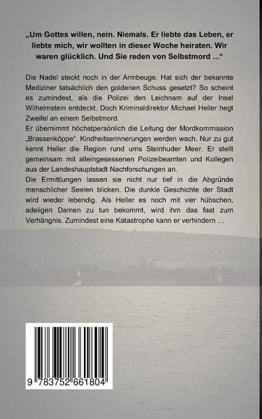 Um Gottes willen, nein. Niemals. Er liebte das Leben, er liebte mich, wir wollten in dieser Woche heiraten. Wir waren glücklich. Und Sie reden von Selbstmord... Die Nadel steckt noch in der Armbeuge. Hat sich der bekannte Mediziner tatsächlich den goldenen Schuss gesetzt? So scheint es zumindest, als die Polizei den Leichnam auf der Insel Wilhelmstein entdeckt. Doch Kriminaldirektor Michael Heller hegt Zweifel an einem Selbstmord.Er übernimmt höchstpersönlich die Leitung der Mordkommission Brassenköppe. Kindheitserinnerungen werden wach. Nur zu gut kennt Heller die Region rund ums Steinhuder Meer. Er stellt gemeinsam mit alteingesessenen Polizeibeamten und Kollegen aus der Landeshauptstadt Nachforschungen an.Die Ermittlungen lassen sie nicht nur tief in die Abgründe menschlicher Seelen blicken. Die dunkle Geschichte der Stadt wird wieder lebendig. Als Heller es noch mit vier hübschen, adeligen Damen zu tun bekommt, wird ihm das fast zum Verhängnis. Zumindest eine Katastrophe kanner verhindern...