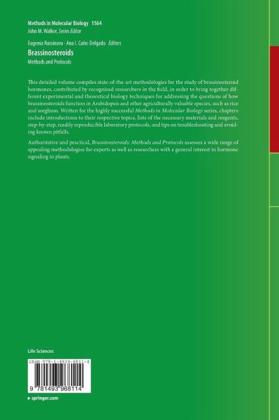 Protocol for Extraction and Isolation of Brassinosteroids from Plant Tissues.- Synthetic Protocol for AFCS: A Biologically Active Fluorescent Castasterone Analog Conjugated to an Alexa Fluor 647 Dye.- Physiological Analysis of Brassinosteroid Responses and Sensitivity in Rice.- Light Regulation of Brassinosteroid Signaling Components: Checking Regulation of Protein Stability in Darkness.- Approaches to Study Light Effects on Brassinosteroid Sensitivity.- A Technical Framework for Studying the Signaling Nexus of Brassinosteroids and Immunity.- Identification of Brassinosteroid Target Genes by Chromatin Immunoprecipitation Followed by High-Throughput Sequencing (ChIP-seq) and RNA-Sequencing.- Quantitation of Cell Type-Specific Responses to Brassinosteroid by Deep Sequencing of Polysome-Associated Polyadenylated RNA.- Methods for Modeling Brassinosteroid-Mediated Signaling in Plant Development.- Quantitative Microscopic Analysis of Plasma Membrane Receptor Dynamics in Living Plant Cells.- Analysis of In Vitro DNA Interactions of Brassinosteroid-Controlled Transcription Factors Using Electrophoretic Mobility Shift Assay.- Identification of Brassinosteroid Signaling Complexes by Coimmunoprecipitation and Mass Spectrometry.- Simplified Enrichment of Plasma Membrane Proteins from Arabidopsis thaliana Seedlings Using Differential Centrifugation and Brij-58 Treatment.- Probing Activation and Deactivation of the BRASSINOSTEROID INSENSITIVE1 Receptor Kinase by Immunoprecipitation.- The Primary Root of Sorghum bicolor (L. Moench) as a Model System to Study Brassinosteroid Signaling in Crops.- Brassinosteroid Action in Plant Abiotic Stress Tolerance.