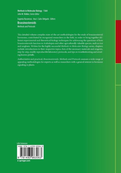 Protocol for Extraction and Isolation of Brassinosteroids from Plant Tissues.- Synthetic Protocol for AFCS: A Biologically Active Fluorescent Castasterone Analog Conjugated to an Alexa Fluor 647 Dye.- Physiological Analysis of Brassinosteroid Responses and Sensitivity in Rice.- Light Regulation of Brassinosteroid Signaling Components: Checking Regulation of Protein Stability in Darkness.- Approaches to Study Light Effects on Brassinosteroid Sensitivity.- A Technical Framework for Studying the Signaling Nexus of Brassinosteroids and Immunity.- Identification of Brassinosteroid Target Genes by Chromatin Immunoprecipitation Followed by High-Throughput Sequencing (ChIP-seq) and RNA-Sequencing.- Quantitation of Cell Type-Specific Responses to Brassinosteroid by Deep Sequencing of Polysome-Associated Polyadenylated RNA.- Methods for Modeling Brassinosteroid-Mediated Signaling in Plant Development.- Quantitative Microscopic Analysis of Plasma Membrane Receptor Dynamics in Living Plant Cells.- Analysis of In Vitro DNA Interactions of Brassinosteroid-Controlled Transcription Factors Using Electrophoretic Mobility Shift Assay.- Identification of Brassinosteroid Signaling Complexes by Coimmunoprecipitation and Mass Spectrometry.- Simplified Enrichment of Plasma Membrane Proteins from Arabidopsis thaliana Seedlings Using Differential Centrifugation and Brij-58 Treatment.- Probing Activation and Deactivation of the BRASSINOSTEROID INSENSITIVE1 Receptor Kinase by Immunoprecipitation.- The Primary Root of Sorghum bicolor (L. Moench) as a Model System to Study Brassinosteroid Signaling in Crops.- Brassinosteroid Action in Plant Abiotic Stress Tolerance.