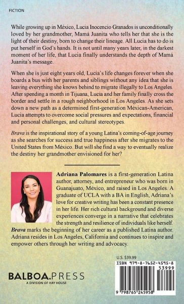 While growing up in México, Lucia Inocencio Granados is unconditionally loved by her grandmother, Mamá Juanita who tells her that she is the light of their destiny, born to change their lineage. All Lucia has to do is put herself in God's hands. It is not until many years later, in the darkest moment of her life, that Lucia finally understands the depth of Mamá Juanita's message. When she is just eight years old, Lucia's life changes forever when she boards a bus with her parents and siblings without any idea that she is leaving everything she knows behind to migrate illegally to Los Angeles. After spending a month in Tijuana, Lucia and her family finally cross the border and settle in a rough neighborhood in Los Angeles. As she sets down a new path as a determined first-generation Méxican-American, Lucia attempts to overcome social pressures and expectations, financial and personal challenges, and cultural stereotypes. Brava is the inspirational story of a young Latina's coming-of-age journey as she searches for success and true happiness after she migrates to the United States from México. But will she find a way to eventually realize the destiny her grandmother envisioned for her? Brava is the recipient of the 2024 International Latino Book Awards in two categories including the Isabel Allende Most Inspirational Fiction Book Award - English and The Mariposa Award - Best First Book - Fiction - English. It also received an Honorable Mention for Best Latina Themed Book.