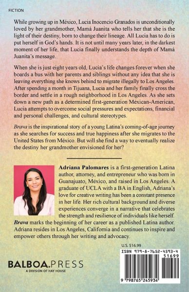 While growing up in México, Lucia Inocencio Granados is unconditionally loved by her grandmother, Mamá Juanita who tells her that she is the light of their destiny, born to change their lineage. All Lucia has to do is put herself in God's hands. It is not until many years later, in the darkest moment of her life, that Lucia finally understands the depth of Mamá Juanita's message. When she is just eight years old, Lucia's life changes forever when she boards a bus with her parents and siblings without any idea that she is leaving everything she knows behind to migrate illegally to Los Angeles. After spending a month in Tijuana, Lucia and her family finally cross the border and settle in a rough neighborhood in Los Angeles. As she sets down a new path as a determined first-generation Méxican-American, Lucia attempts to overcome social pressures and expectations, financial and personal challenges, and cultural stereotypes. Brava is the inspirational story of a young Latina's coming-of-age journey as she searches for success and true happiness after she migrates to the United States from México. But will she find a way to eventually realize the destiny her grandmother envisioned for her? Brava is the recipient of the 2024 International Latino Book Awards in two categories including the Isabel Allende Most Inspirational Fiction Book Award - English and The Mariposa Award - Best First Book - Fiction - English. It also received an Honorable Mention for Best Latina Themed Book.