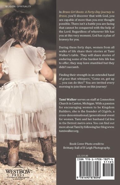In Brave Girl Boots: A Forty-Day Journey to Brave, you'll discover that with God, you are capable of more than you ever thought possible. There isn't a battle you are facing that cannot be conquered with the help of the Lord. Regardless of wherever life has you at this very moment, God has a plan of bravery for you. During these forty days, women from all walks of life share their stories at Tami Walker's table. They will share stories of enduring some of the hardest hits life has to offer; they may have stumbled but they didn't succumb. Finding their strength in an extended hand of grace that whispers, "Come on, get up ... you can do this!" You are invited every morning to join them on this journey!