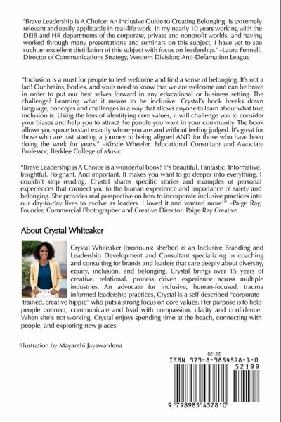 Brave Leadership is A Choice: An Inclusive Guide to Creating Belonging is for leaders who care deeply about cultivating inclusive, human-focused environments to support greater connection, creativity, and collaboration. Leaders will be guided through examining their roles in creating inclusive environments and learn how to: Get rooted in core values to make aligned decisions Identify and disrupt bias on personal, professional, and community levels Embody an inclusive leadership style that reflects their core values and how they want to support others Create a sense of belonging from within so more people feel brave enough to be who they are in the spaces they engage in Cultivate space for people to direct energy towards creativity, collaboration, and productivity, rather than worrying about whether or not they're welcome or belong in a space