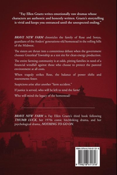 This human drama chronicles the families of two middle-aged sisters, guardians of the generations-old homestead. They stand at odds when Greenleaf Township is one of the nation's "winning" districts chosen by a federal government sanctioned lottery. The family's disagreement centers on a contentious issue: Should they surrender pastoral acreage for financial gain to a secretive techno-conglomerate for the good of the planet? Lines are drawn between new age renewable energy production and the protection of the countryside's environment. Meanwhile, each sister faces a devastating family tragedy that threatens to unravel their legacy and their future. Suspicions arise after another "farm accident." If justice is served, who will be left to run the farm?