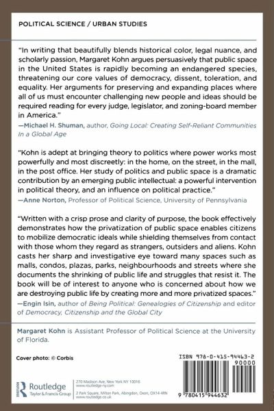 Chapter One: Introduction Chapter Two: Weapons of the Wobblies: The Street Speaking Fights Chapter Three: The Public Forum Doctrine Chapter Four: The Mauling of Public Space Chapter Five: God, Caesar, and the Constitution Chapter Six: Brave New Neighborhoods Chapter Seven: Battery Park City Chapter Eight: Homeless Free Zones: Three Critiques Chapter Nine: Conclusion: Public Goods and Public Space Chapter Ten: Afterward: No Central Park in Cyberspace