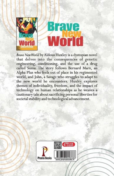 Brave New World by Aldous Huxley is a dystopian novel that delves into the consequences of genetic engineering, conditioning, and the use of a drug called Soma. The story follows Bernard Marx, an Alpha Plus who feels out of place in his regimented world, and John, a Savage who struggles to adapt to the new world he encounters. Huxley explores themes of individuality, freedom, and the impact of technology on human relationships as he weaves a cautionary tale about sacrificing personal liberties for societal stability and technological advancement.