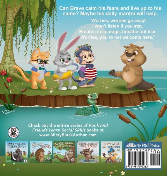 Nervous? Anxious? Stressed? You're not alone! Help young ones ease their anxiety with Brave the Beaver. Brave can't help but worry . . . about everything! Worry causes his heart to race and his stomach to ache. And when it gets really bad... POP! ...the worry warts start popping up too! What's a brave beaver to do? Can his daily mantra help calm his fears? "Worries, worries, go away! I won't listen if you stay. Breathe in courage. Breathe out fear. Worries, you're not welcome here!" Parents, counselors, and teachers love that the valuable life lessons in the Punk and Friends Learn Social Skills books are taught in such a fun way that kids don't even realize they're learning. This book is geared toward children aged 3 to 7. It's never too early to talk about social skills. Coping strategies, as well as teacher and parent discussion materials on these topics, are included in the back of the book. Read Brave the Beaver Has the Worry Warts to see if this worrier can become a warrior today!
