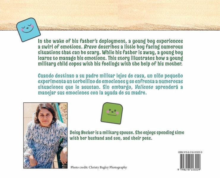 In the wake of his father's deployment, a young boy experiences a swirl of emotions. Brave describes a little boy facing numerous situations that can be scary. While his father is away, a young boy learns to manage his emotions. This story illustrates how a young military child copes with his feelings with the help of his mother.