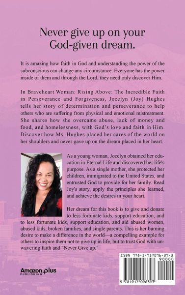 It is amazing how faith in God and understanding the power of the subconscious can change any circumstance. Everyone has the power inside of them and through the Lord, they need only discover Him. In Braveheart Woman: Rising Above: The Incredible Faith in Perseverance and Forgiveness, Jocelyn (Joy) Hughes tells her story of determination and perseverance to help others who are suffering from physical and emotional mistreatment. She shares how she overcame abuse, lack of money and food, and homelessness, with God's love and faith in Him. Discover how Ms. Hughes placed her cares of the world on her shoulders and never gave up on the dream placed in her heart.