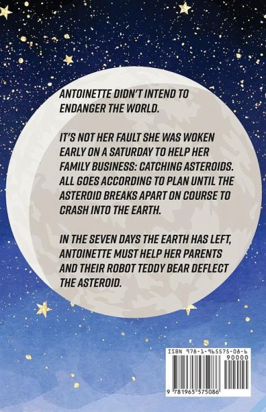 Antoinette Bookwright didn't intend to endanger the world, but it's not her fault she was woken early on a Saturday. Before her yawns fade, Antoinette finds herself aboard a rocket to harpoon an asteroid that her mother, Sarka, discovered minutes ago. Its mineral wealth could pay off their family business' debt, but the laws of space mining dictate the asteroid belongs to whoever captures it first. All goes according to plan until the asteroid breaks apart during the capture attempt. Thanks to Sarka Bookwright's most famous invention-a device that can control gravity-they survive the disaster only to discover a fragment of the asteroid is now on course to crash into the Earth. Before Antoinette and her mother can identify what caused the accident, the news breaks and the government orders her mother's arrest for reckless endangerment (of everyone on Earth). In the seven days the Earth has left, Antoinette must help her parents and their robot teddy bear, Gimini, make peace with their pursuers in order to work together to deflect the asteroid.