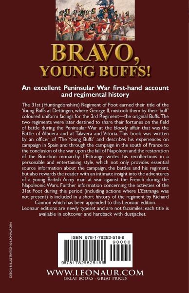 An excellent Peninsular War first-hand account and regimental history The 31st (Huntingdonshire) Regiment of Foot earned their title of the Young Buffs at Dettingen, where George II, mistook them by their 'buff' coloured uniform facings for the 3rd Regiment-the original Buffs. The two regiments were later destined to share their fortunes on the field of battle during the Peninsular War at the bloody affair that was the Battle of Albuera and at Talavera and Vitoria. This book was written by an officer of 'The Young Buffs' and describes his experiences on campaign in Spain and through the campaign in the south of France to the conclusion of the war upon the fall of Napoleon and the restoration of the Bourbon monarchy. L'Estrange writes his recollections in a personable and entertaining style, which not only provides essential source information about the campaign, the battles and his regiment, but also rewards the reader with an intimate insight into the adventures of a young British Army man at war against the French during the Napoleonic Wars. Further information concerning the activities of the 31st Foot during this period (including actions where L'Estrange was not present) is included in a short history of the regiment by Richard Cannon which has been appended to this Leonaur edition. Leonaur editions are newly typeset and are not facsimiles; each title is available in softcover and hardback with dustjacket.