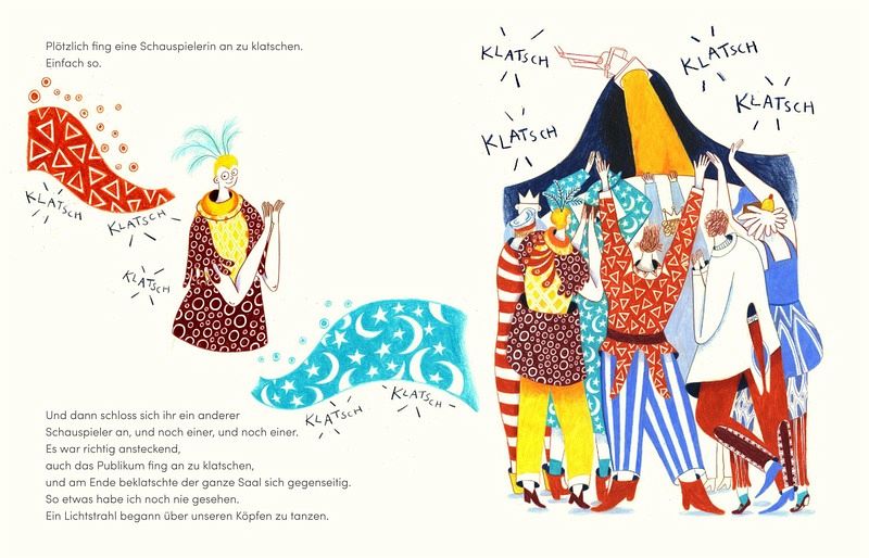 "Ein geniales Gedankenspiel." Andrea Wanner, TITEL-Kulturmagazin "Mit überraschenden Wendungen und einer spannenden Entstehungsgeschichte." Heinz Wagner, KiJUKU "Die Illustrationen sind einfach traumhaft." Ilona Stütz "Perfekt zum Vorlesen ab 5 Jahren und zum Mutmachen für Groß und Klein." Bianca Priolo, @kreativer.konfetti.regen "Applaus für eine besondere Geschichte." Claudia Reinländer "Die Idee, die Herangehensweise, die Umsetzung, die Illustration, alles ist überraschend, mitreißend und begeisternd. Ein ganz besonderes Bilderbuch, das zum Nachdenken und Nachmachen motiviert." Judith Vrba, Buchkultur "Ein etwas anderes Kinderbuch, das ein bisschen Abwechslung ins Bücherregal bringt." Rebecca Tessmer, @diebecca87testet "Farbenprächtiges Bilderbuch über den Wert von Anerkennung und einen besonderen Theaterbesuch." Buchjournal