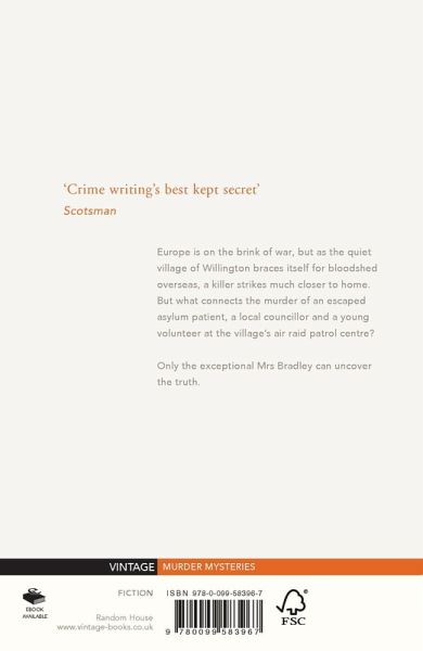 Rediscover Gladys Mitchell one of the 'Big Three' female crime fiction writers alongside Agatha Christie and Dorothy L. Sayers. Europe is on the brink of war but as the quiet village of Willington braces itself for bloodshed overseas a killer strikes much closer to home. But what connects the murder of an escaped asylum patient a local councillor and a young volunteer at the village's air raid patrol centre? Only the exceptional Mrs Bradley psychoanalyst and celebrated detective can uncover the truth. Opinionated unconventional unafraid... If you like Poirot and Miss Marple you'll love Mrs Bradley.