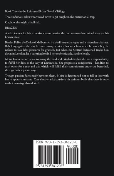 A rake known for his seductive charm marries the one woman determined to resist his brazen smile. Braden Fulke, the Duke of Melbourne, is a devil-may-care rogue and a shameless charmer. Rebelling against the day he must marry a bride chosen or him when he was a boy, he refuses to take life's pleasures for granted. But when his Scottish betrothed tracks him down in London, he is surprised to find her so formidable…and so lovely. Moira Dunn has no desire to marry the bold and rakish duke, but she has a responsibility to fulfill her duty as the lady of Dunnwood. She proposes a compromise-handfast to each other for a year and day, which will fulfill their commitment under the betrothal, then go their separate ways. Though passion flares easily between them, Moira is determined not to fall in love with her temporary husband. Can a brazen rake convince his resistant bride that there is more to their marriage than desire?