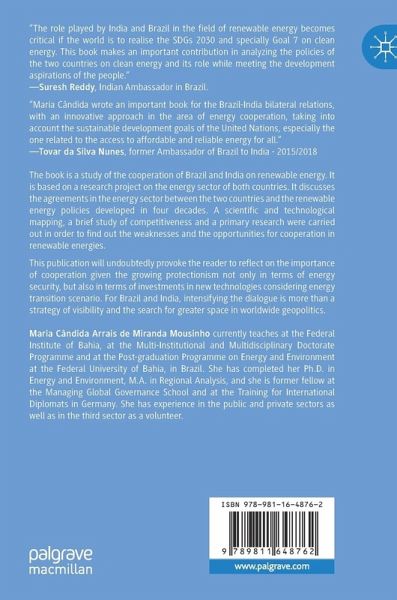 The book is a study of the cooperation of Brazil and India on renewable energy. It is based on a research project on the energy sector of both the countries. It discusses the agreements in the energy sector between the two countries and the renewable energy policies developed in four decades. A scientific and technological mapping, a brief study of competitiveness and a primary research were carried out in order to find out the weaknesses and the opportunities for cooperation in renewable energies.