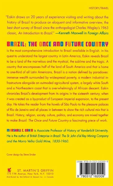 As the most comprehensive introduction to Brazil available in English, Brazil: The Once and Future Country shows Brazil to be a land of the marvellous and the mystical, the sublime and the tragic. Eakin describes a country defined by paradoxes: immense wealth surrounded by widespread poverty, a modern industrial infrastructure alongside an outmoded agricultural system, a largely white South and a Northeastern coast that is overwhelmingly of African descent. Eakin chronicles Brazil's development from its origins in the sixteenth century, when it was created as a by-product of European imperial expansion, to the present day. He takes the reader from the hovels of Sao Paolo to the pleasure palaces of Rio de Janeiro and all places in between to show the rich cultural mix that is Brazil. Brazil: The Once and Future Country is a fascinating read that anyone interested in Brazil will want. It is also the perfect book for the traveller, armchair or otherwise, interested in this endlesslyfascinating country.