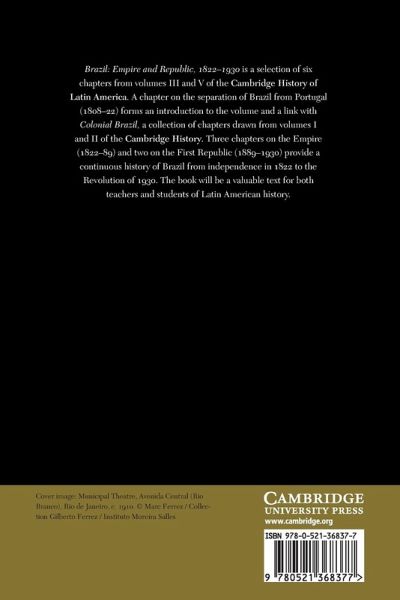 Brazil: Empire and Republic provides a continuous history of Brazil from independence in 1822 to the Revolution of 1930. A chapter on the separation of Brazil from Portugal (1808â 22) forms an introduction to the volume and a link with Colonial Brazil. Bibliographical essays are included for all chapters. The book will be a valuable text for both teachers and students of Latin American history.