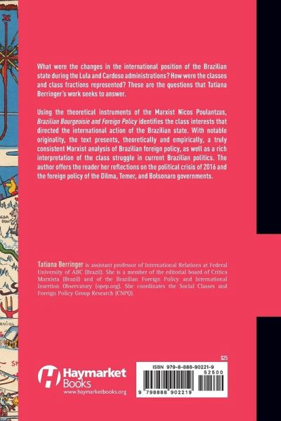 What were the changes in the international position of the Brazilian state during the Lula and Cardoso administrations? How were the classes and class fractions represented? These are the questions that Tatiana Berringer's work seeks to answer. Using the theoretical instruments of the Marxist Nicos Poulantzas, Brazilian Bourgeoisie and Foreign Policy identifies the class interests that directed the international action of the Brazilian state. With notable originality, the text presents, theoretically and empirically, a truly consistent Marxist analysis of Brazilian foreign policy, as well as a rich interpretation of the class struggle in current Brazilian politics. The author offers the reader her reflections on the political crisis of 2016 and the foreign policy of the Dilma, Temer, and Bolsonaro governments.