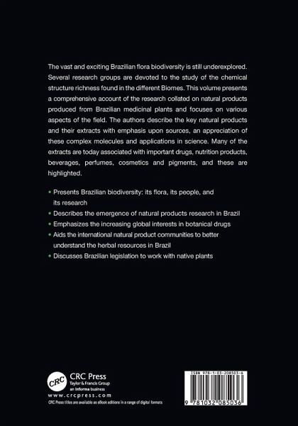 The vast and exciting Brazilian flora biodiversity is still underexplored. Several research groups are devoted to the study of the chemical structure richness found in the different Biomes. This volume presents a comprehensive account of the research collated on natural products produced from Brazilian medicinal plants and focuses on various aspects of the field. The authors describe the key natural products and their extracts with emphasis upon sources, an appreciation of these complex molecules and applications in science. Many of the extracts are today associated with important drugs, nutrition products, beverages, perfumes, cosmetics and pigments, and these are highlighted.