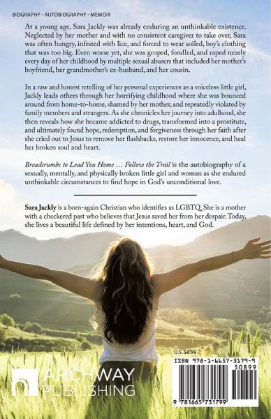 At a young age, Sara Jackly was already enduring an unthinkable existence. Neglected by her mother and with no consistent caregiver to take over, Sara was often hungry, infested with lice, and forced to wear soiled, boy's clothing that was too big. Even worse yet, she was groped, fondled, and raped nearly every day of her childhood by multiple sexual abusers that included her mother's boyfriend, her grandmother's ex-husband, and her cousin. In a raw and honest retelling of her personal experiences as a voiceless little girl, Jackly leads others through her horrifying childhood where she was bounced around from home-to-home, shamed by her mother, and repeatedly violated by family members and strangers. As she chronicles her journey into adulhood, she then reveals how she became addicted to drugs, transformed into a prostitute, and ultimately found hope, redemption, and forgiveness through her faith after she cried out to Jesus to remove her flashbacks, restore her innocence, and heal her broken soul and heart. Breadcrumbs to Lead You Home ... Follow the Trail is the autobiography of a sexually, mentally, and physically broken little girl and woman as she endured unthinkable circumstances to find hope in God's unconditional love.
