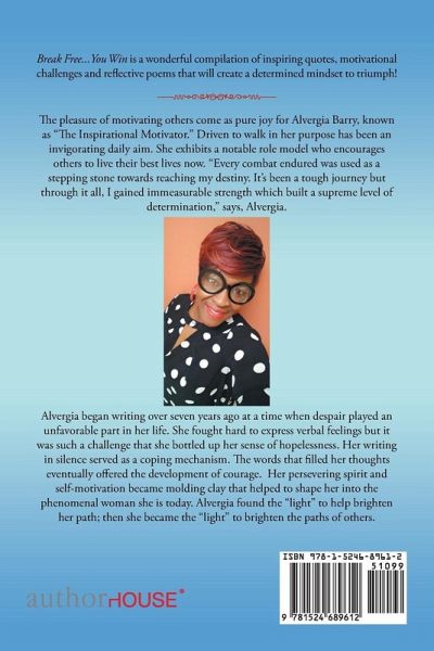 Break Free...You Win is a wonderful compilation of inspiring quotes, motivational challenges and reflective poems that will create a determined mindset to triumph!