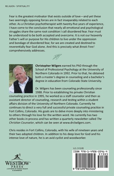 Fear is the greatest motivator that exists outside of love-and yet these two seemingly opposing forces are in fact inseparably related to each other. As a Christian psychotherapist with twenty-five years of experience, I have come to the conclusion that nearly all emotional and psychological struggles share the same root condition I call disordered fear. Fear must be understood to be both accepted and overcome. It is not our heavenly Father's will or purpose for His children to live under the oppression and bondage of disordered fear, for we are created and destined to reverentially fear God alone. And this is precisely what Break Free! comprehensively addresses.