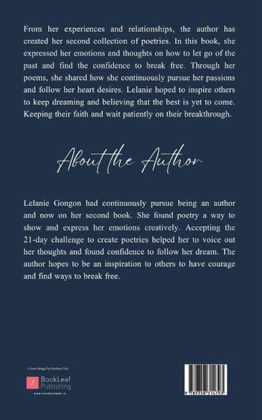 From her experiences and relationships, the author has created her second collection of poetries. In this book, she expressed her emotions and thoughts on how to let go of the past and find the confidence to break free. Through her poems, she shared how she continuously pursue her passions and follow her heart desires. Lelanie hoped to inspire others to keep dreaming and believing that the best is yet to come. Keeping their faith and wait patiently on their breakthrough.