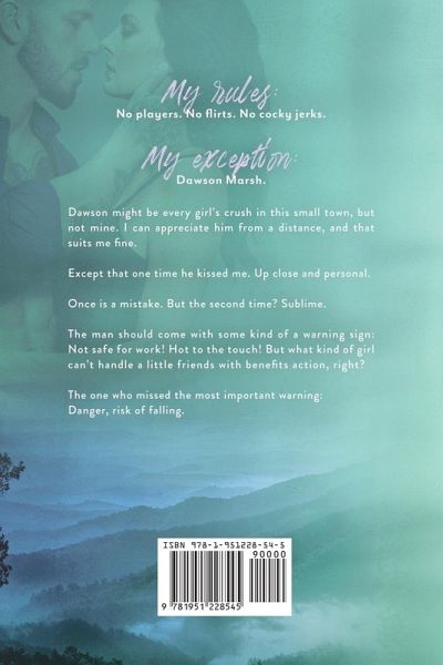 My rules: No players. No flirts. No cocky jerks. My exception: Dawson Marsh. Dawson might be every girl’s crush in this small town, but not mine. I can appreciate him from a distance, and that suits me fine. Except that one time he kissed me. Up close and personal. Once is a mistake. But the second time? Sublime. The man should come with some kind of a warning sign: Not safe for work! Hot to the touch! But what kind of girl can’t handle a little friends with benefits action, right? The one who missed the most important warning: Danger, risk of falling. *This is a full-length, standalone romance with a guaranteed HEA.