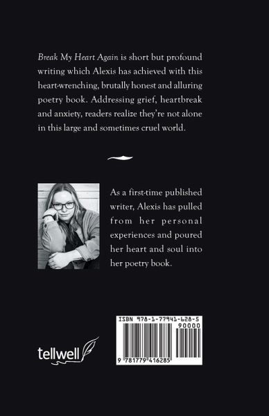 Break My Heart Again is short but profound writing which Alexis has achieved with this heart-wrenching, brutally honest and alluring poetry book. Addressing grief, heartbreak and anxiety, readers realize they're not alone in this large and sometimes cruel world.
