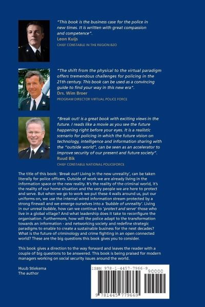 'Break out! Living in the new unreality', can be taken literally for police offi cers. Outside of work we are already living in the information space or the new reality. It's the reality of the criminal world, it's the reality of our home situation and the very people we are here to protect and serve. But when we go to work we put these 4 walls around us, put our uniforms on, we use the internal wired information stream protected by a strong firewall and we emerge ourselves into a 'bubble of unreality'.