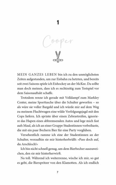 Sie ist die Tochter meines Trainers und damit absolut tabu. Aber seit sie mich auf der Eisbahn angesprochen hat, bekomme ich sie einfach nicht mehr aus dem Kopf. Sie will, dass ich ihr all die Dinge zeige, die sie im Bett erleben möchte. Wenn ich mich darauf einlasse, kann ich mich auf dem Eis vielleicht endlich wieder auf andere Dinge konzentrieren - doch wenn ihr Vater jemals davon erfährt, kann ich mich von meiner Chance Captainzu werden ein für alle Mal verabschieden ...