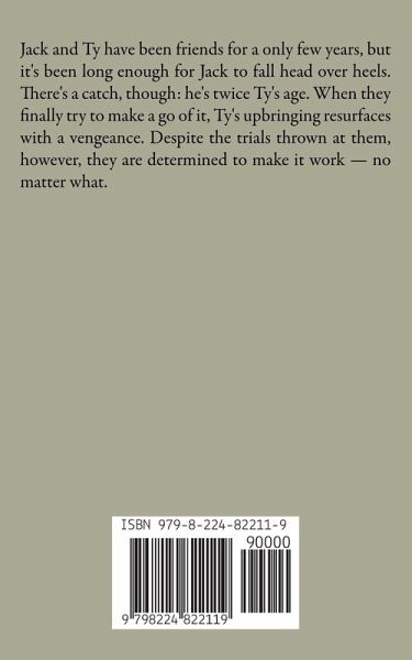 Jack and Ty have been friends for a only few years, but it's been long enough for Jack to fall head over heels. There's a catch, though: he's twice Ty's age. When they finally try to make a go of it, Ty's upbringing resurfaces with a vengeance. Despite the trials thrown at them, however, they are determined to make it work - no matter what.