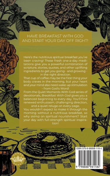 Here's the nutritious spiritual breakfast you've been craving! These fresh one-a-day meditations give you a powerful combination of scripture, stories, quotes, and other uplifting ingredients to get you going - and growing - in the right direction. That cup of coffee may be the first thing your body craves in the morning, but your heart and your mind also need wake-up stimulation - from God's Word! From the Quiet Moments With God series of devotionals, Breakfast With God gives you a balanced beginning to every day. You'll find renewed enthusiasm, challenging direction, and a quiet refuge on every page. You wouldn't expect to make it through the morning without a nutritious breakfast, so why skimp on spiritual nourishment? Start your day with full-strength spiritual inspiration!