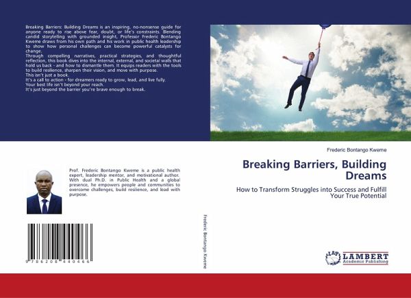 Breaking Barriers: Building Dreams is an inspiring, no-nonsense guide for anyone ready to rise above fear, doubt, or life's constraints. Blending candid storytelling with grounded insight, Professor Frederic Bontango Kweme draws from his own path and his work in public health leadership to show how personal challenges can become powerful catalysts for change.Through compelling narratives, practical strategies, and thoughtful reflection, this book dives into the internal, external, and societal walls that hold us back - and how to dismantle them. It equips readers with the tools to build resilience, sharpen their vision, and move with purpose.This isn't just a book.It's a call to action - for dreamers ready to grow, lead, and live fully.Your best life isn't beyond your reach.It's just beyond the barrier you're brave enough to break.