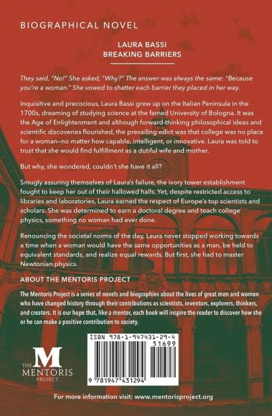 They said, "No!" She asked, "Why?" The answer was always the same: "Because you’re a woman." She vowed to shatter each barrier they placed in her way. Inquisitive and precocious, Laura Bassi grew up on the Italian Peninsula in the 1700s, dreaming of studying science at the famed University of Bologna. It was the Age of Enlightenment and although forward-thinking philosophical ideas and scientific discoveries flourished, the prevailing edict was that college was no place for a woman—no matter how capable, intelligent, or innovative. Laura was told to trust that she would find fulfillment as a…mehr